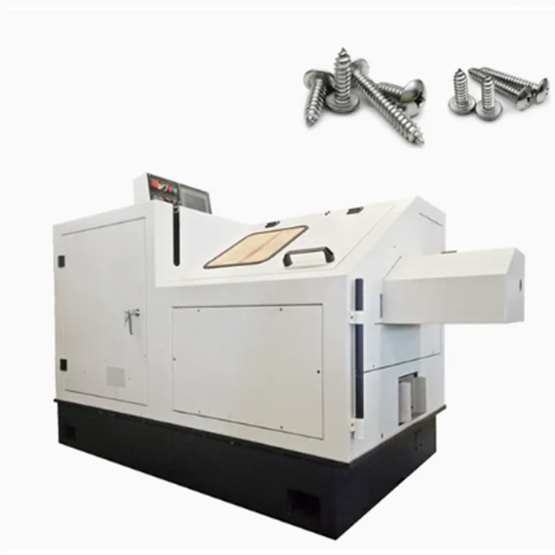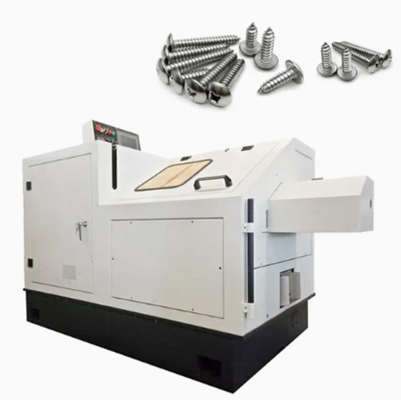 Den automatiske træskruefremstillingsmaskine er specifikt designet til produktion af træskruer. Indsæt ledningen i maskinen, skær den til den krævede længde, tryk derefter skruhovedet ud, form den tykke tråd, der er egnet til træ, og skab til sidst et skarpt spids.