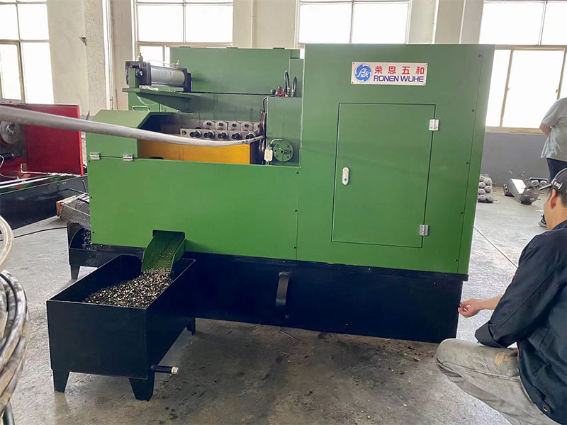 Arbejdsprincippet for rustfri stålmøtrik er, at motoren driver den interne form til at fungere. Sæt metalråmaterialet ind i fødeporten, maskinen sender automatisk råmaterialet mellem formene, og derefter vil formen hurtigt slå, presse råmaterialet i form af en møtrik og ekstrudere tråden på samme tid.