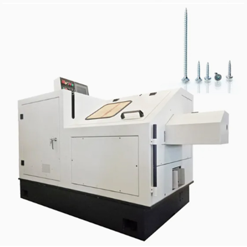Skruefremstillingsmaskinen i rustfrit stål er specifikt designet til fremstilling af rustfrit stålskruer. Først føres rustfrit ståltråden ind i maskinen, som derefter skæres til den ønskede længde. Derefter trykkes skruehovedet ud ved hjælp af en form, og trådene rulles på det.